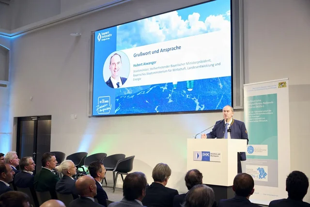 Nach den Ansprachen von Dr. Manfred Gößl (Hauptgeschäftsführer Bayerische Industrie- und Handelskammer & IHK für München und Oberbayern) und Hubert Aiwanger (Staatsminister @Bayerisches Staatsministerium für Wirtschaft, Landesentwicklung und Energie, Stellvertretender Bayerischer Ministerpräsident) kamen Geschäftsführer von Unternehmen zum Wort: Vor dem Hintergrund von Wettbewerbsvorteilen und der nötigen Abkehr von fossilen Energieträgern machten sie die Rolle von Netzwerken deutlich.