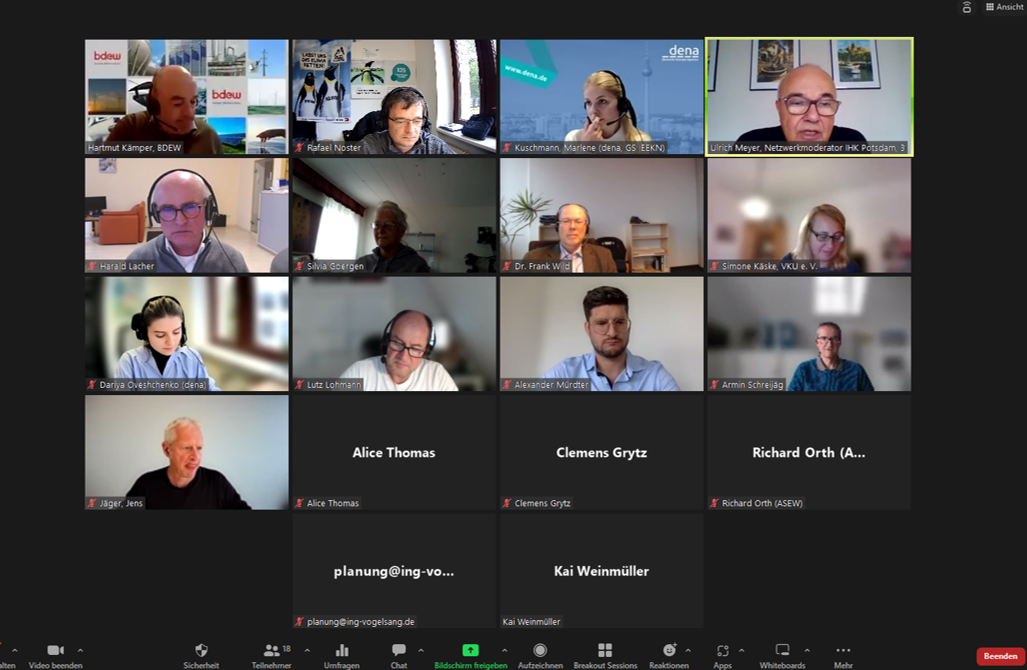 Dieses Online-Format ermöglicht einen offenen Austausch der Akteure zu aktuellen energiepolitischen Fragestellungen oder zu anderen aktuellen Themen in der Moderation von Netzwerken. Thema diesmal: Das Energieeffizienzgesetz (EnEf-G). Es wurde schnell deutlich, dass auch in den Netzwerken aktuell viel über das neue Gesetz diskutiert wird und gegenseitige Unterstützung und Informationsaustausch benötigt wird. Fragen zur Abgrenzung von Unternehmen, insbesondere bei mehreren Standorten, die angekündigte Plattform zur Meldung von Abwärmemengen und der Wunsch nach unbürokratischen Prozessen sind nur wenige Beispiele.
