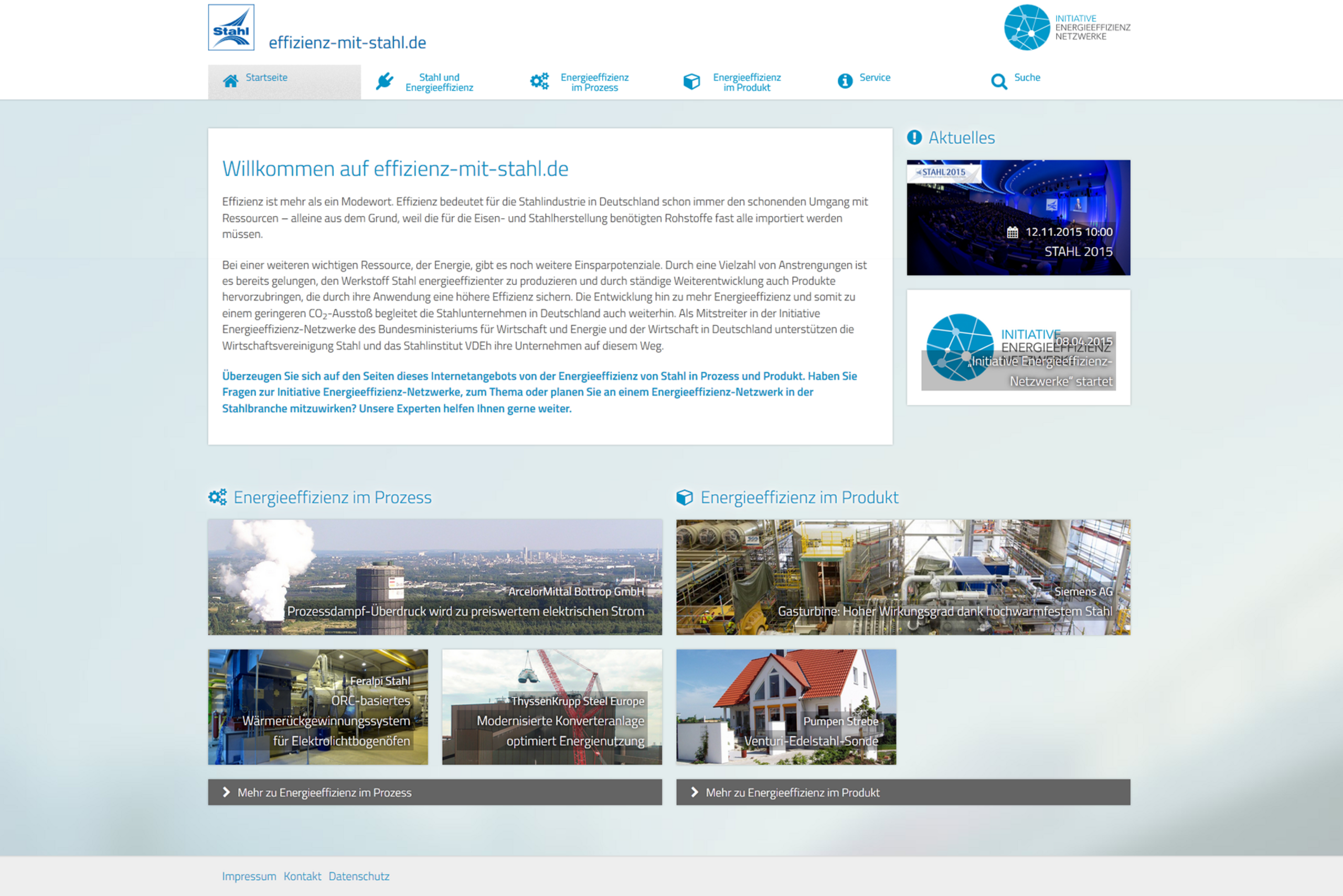 Energieeffizienz ist eins der zentralen Themen in der Stahlindustrie. Mit der Plattform „www.effizienz-mit-stahl.de“, die am 26. August 2015 gestartet ist, informieren Wirtschaftsvereinigung Stahl und Stahlinstitut VDEh über die Maßnahmen der Branche zur Verbesserung der Energieeffizienz.