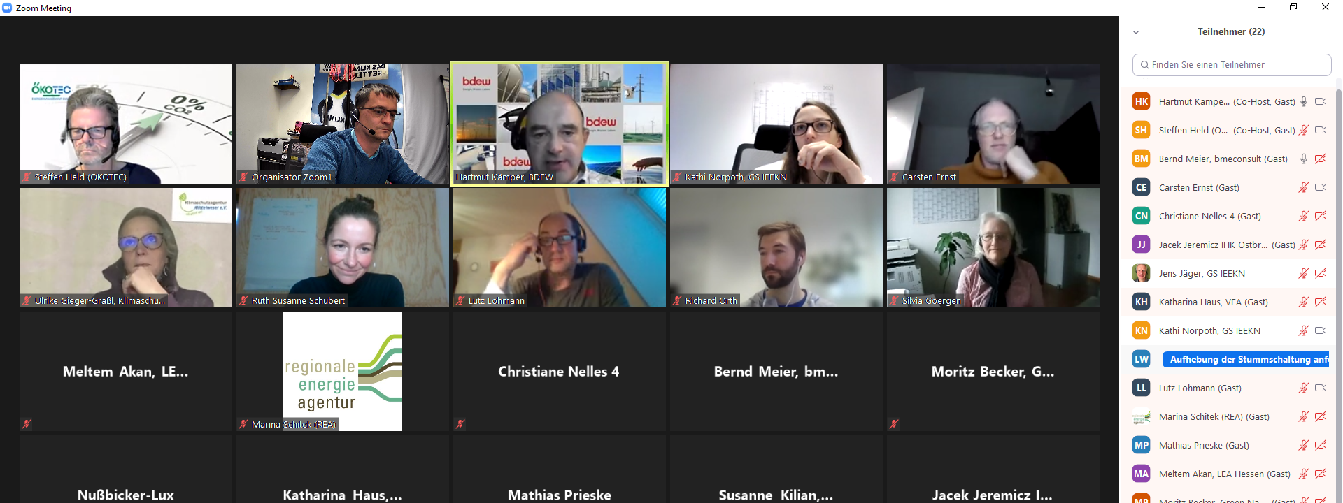 Am 15. Dezember 2021 trafen sich 21 Moderierende aus verschiedenen Energieeffizienz- und Klimaschutz-Netzwerken zum 4. Online-Erfahrungsaustausch für Netzwerkmoderierende. In 2 Stunden wurden hauptsächlich inhaltliche Themen und Konzepte für das Jahr 2022 sowie das Thema Fördermittel in Netzwerken diskutiert. Schon bei dem Blitzlicht zur Eröffnung der Veranstaltung wurde wiederum deutlich: Die Netzwerkarbeit ist sehr vielfältig und verändert sich stetig. Standen vor einigen Jahren Energieeffizienzmaßnahmen vor allem bei Querschnittstechnologien im Vordergrund, sind heute – passend zur Neuausrichtung der Initiative Energieeffizienz- und Klimaschutz-Netzwerke – Themen wie Klimaschutz und Nachhaltigkeit die weiteren Schwerpunkte. Die Themensammlung für anstehende Netzwerktreffen war dabei ebenso lang wie vielfältig: Abwärmenutzung, CO2-Bilanzierung, Speichertechnologien, Transformationskonzepte, Carbon Leackage, E-Mobilität, CO2-Neutralität, Nachhaltigkeit, KWK, Photovoltaik, Klimamanagement.