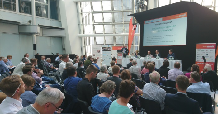 Wie Unternehmen von den Vorteilen der Netzwerkarbeit überzeugt werden können war auch Thema der anschließenden Podiumsdiskussion. Vor der Fragestellung „Sind Energieeffizienz-Netzwerke für jeden etwas?“ wurden die verschiedenen Argumente in der Netzwerkakquise diskutiert und mit persönlichen Erfahrungen der Referenten untermauert. Auch hier zeigte sich: Netzwerke, die mit der Arbeit begonnen haben, sind schnell von den Vorzügen des übergreifenden Austausches überzeugt – auf der Weg bis zur Aufnahme der Netzwerkarbeit ist aber häufig viel Überzeugungsarbeit zu leisten.