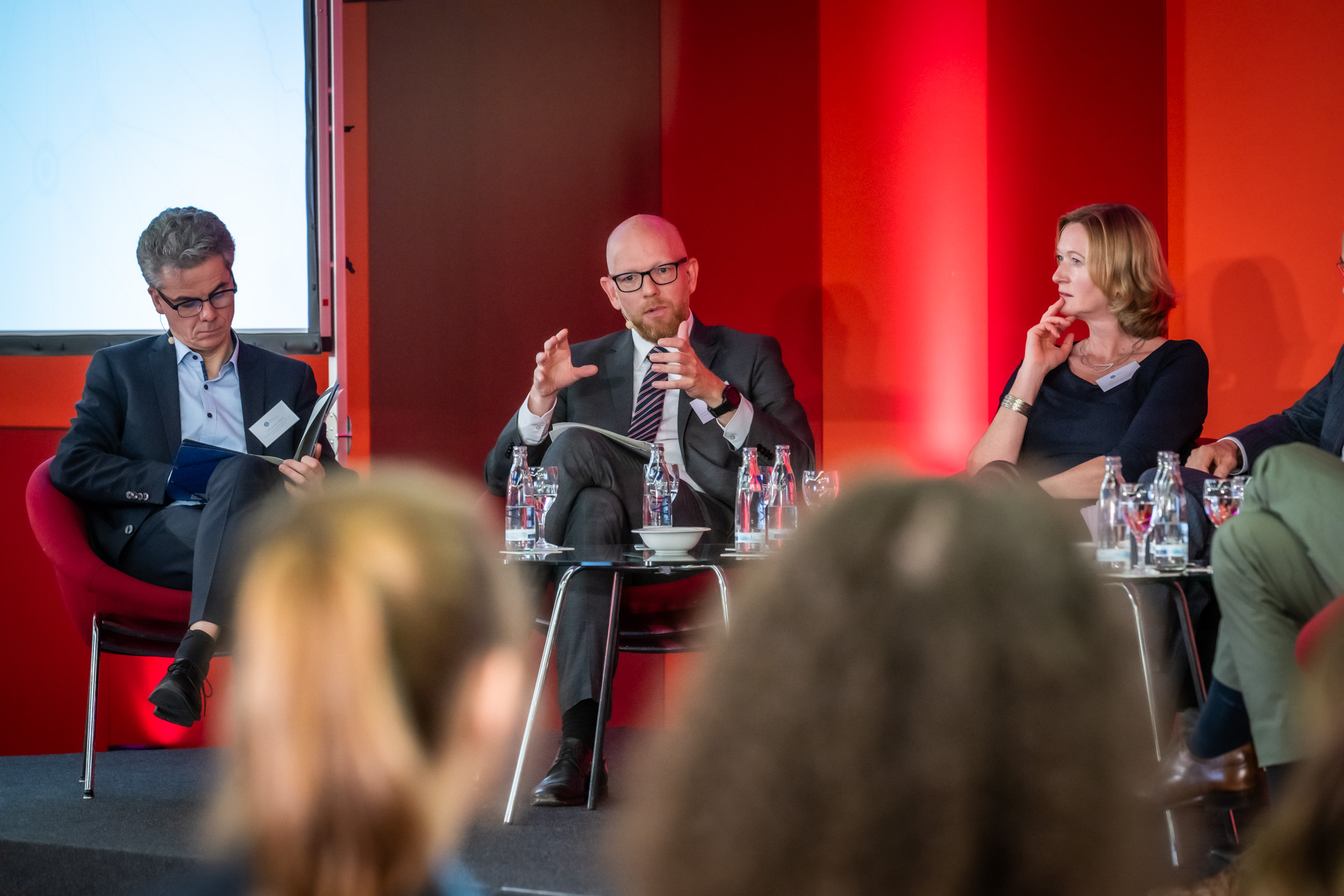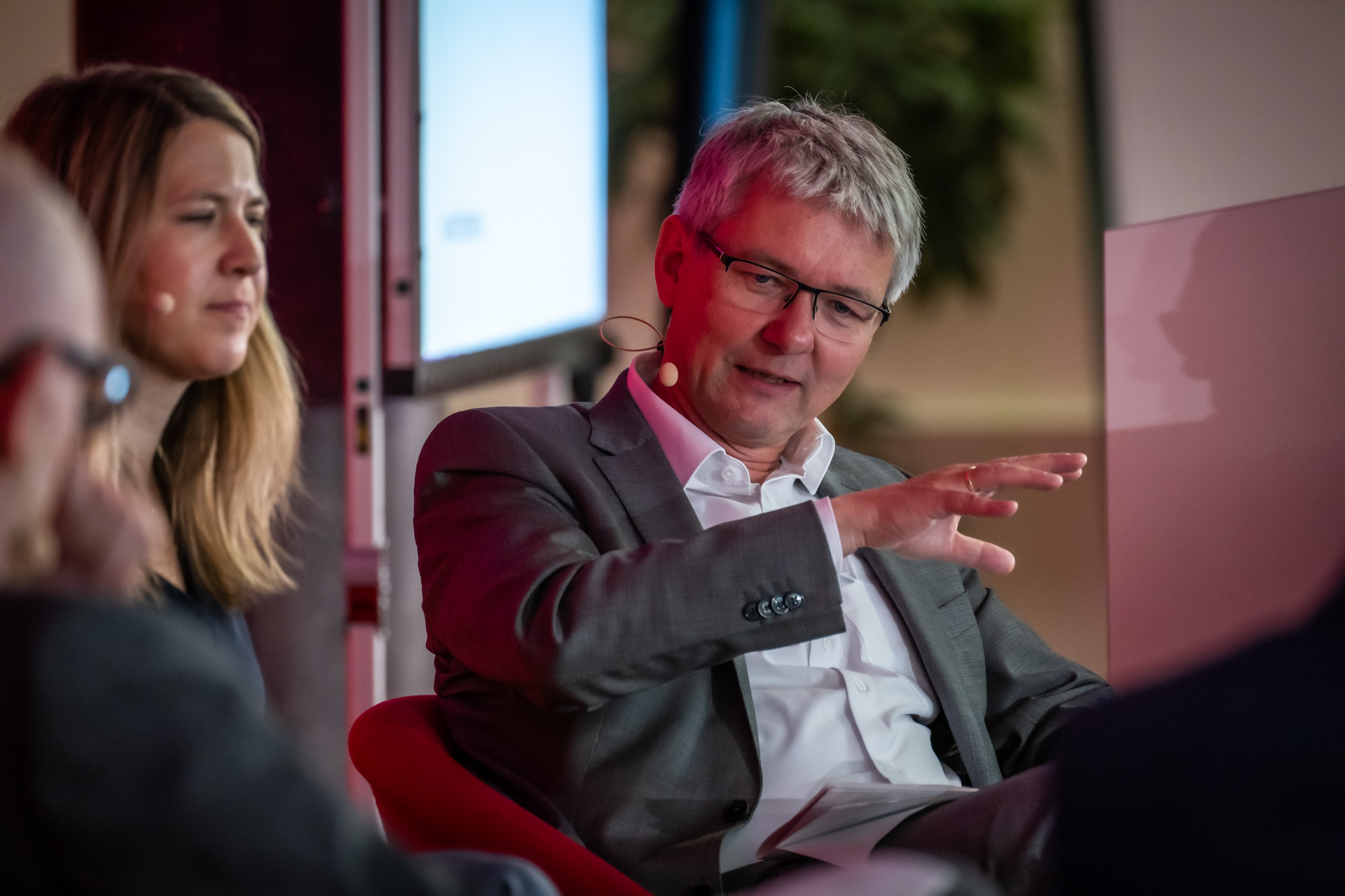 In der anschließenden Podiumsdiskussion mit den Abteilungsleitern Christian Maaß (BMWK) und Ronny Meyer (BMUV) sowie Kerstin Andreae (Vorsitzende der Hauptgeschäftsführung des BDEW), Sarah Bäumchen, (Mitglied der Geschäftsleitung des ZVEI), Dr. Achim Dercks (Stellvertretender Hauptgeschäftsführer der DIHK), Carsten Liedtke (Vizepräsident des VKU) wurden aktuelle energiewirtschaftliche Hürden angeschnitten. Nicht zuletzt wurde die Initiative mehrfach unter den Lösungsansätzen erwähnt. Ein Ergebnis der Podiumsdiskussion ist, dass die Netzwerke als bundesweiter Praxis-Check und als Spiegel für Politik und Wirtschaft gelten sollten, um bürokratische Hemmnisse und Herausforderungen zu identifizieren und aus dem Weg zu räumen. Die Netzwerke würden bereits jetzt dabei helfen, so die Diskutanten, Unternehmen bei der Erschließung des Förderdschungels zu unterstützen. Die Netzwerke würden bereits jetzt dabei helfen den Förderdschungel zu erschließen. In der Bundesförderung EEW bekommen aktive Netzwerke beispielsweise finanzielle Vorteile für Transformationskonzepte.