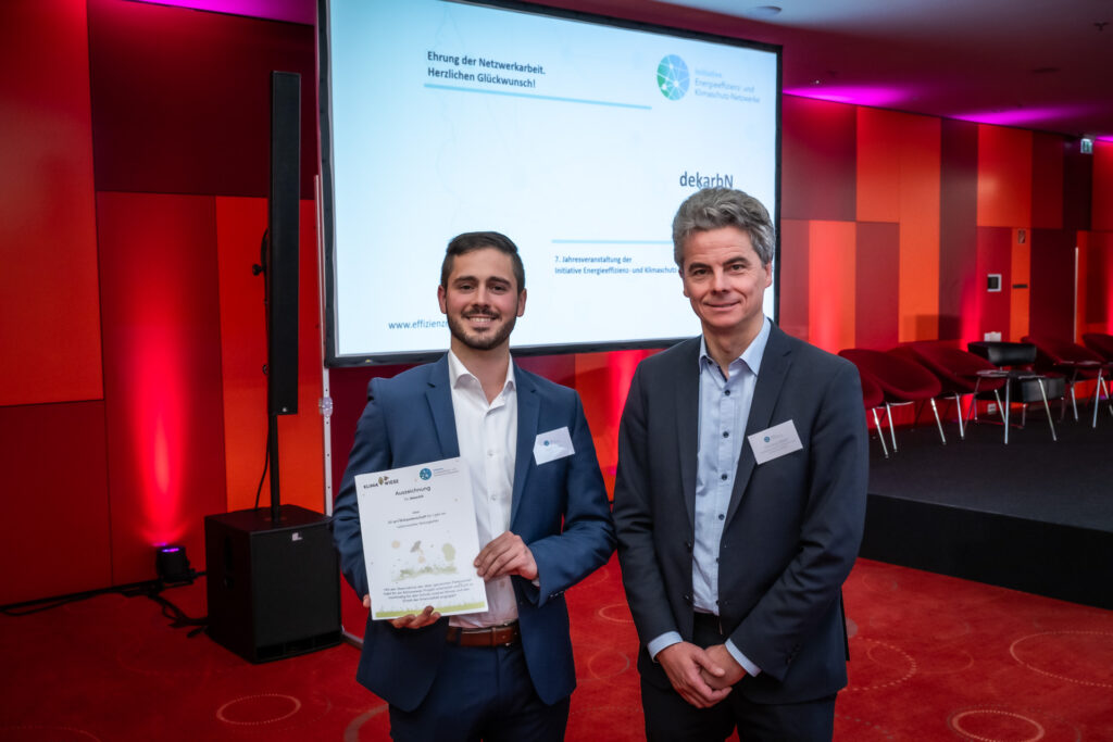Auch dieses Jahr war die Auszeichnung von drei Netzwerken der Initiative ein besonderes Highlight, da sie die Vielfalt an Branchen, Akteuren, Technologien und nicht zuletzt Erkenntnissen widerspiegelt. Für ihre herausragende Netzwerkarbeit wurden “dekarbN” aus dem Raum München, das überregionale Branchennetzwerk “gr-EEN VKU Wasser II” und das “Energieeffizienz- und Klimaschutz-Netzwerk Chemnitz” prämiert. Mit einer großen Vorbildwirkung hat das „Energieeffizienz- und Klimaschutz-Netzwerk Chemnitz“ seit März 2022 insgesamt 36.600 Megawattstunden Endenergie gespart und über 10.000 Tonnen CO2-Äquivalente gespart. “gr-EEN VKU Wasser II” ist ein Netzwerk, das Trinkwasserversorger aus NRW und Niedersachsen vernetzt und durch die Green Navigation GmbH betreut wird. Das Vorgängernetzwerk sparte bis 2022 insgesamt 1,45 GWh/a Endenergie. Die Themen sind bei dem erwähnten Branchennetzwerk ebenfalls vielseitig und zukunftsgerichtet: Digitalisierung, Mess-, Steuerungs- und Regelungstechnik, Regelenergie, Netzrehabilitation, Rechtskataster, Mitarbeiterschulung und THG-Bilanzierung sind benannt worden. Auch das regionale, bayerische Netzwerk “dekarbN” überzeugte bei der Jury: Der Fokus liegt hier beim unmittelbaren Wissenstransfer aus der Forschungsgesellschaft für Energiewirtschaft mbH in die Netzwerkwelt hinein und dem Ausbau von methodischen Kernkompetenzen. Mit den bereits umgesetzten Maßnahmen werden jährlich insgesamt 18,6 GWh Endenergie eingespart. Somit sind die Netzwerktakteure auf dem Weg, das gesetzte Einsparziel von 18,4 GWh/a zu übertreffen. Mit dem vereinbarten Einsparziel werden außerdem die energiebedingten Emissionen in Höhe von 5.480 Tonnen CO2-Äquivalenten eingespart.