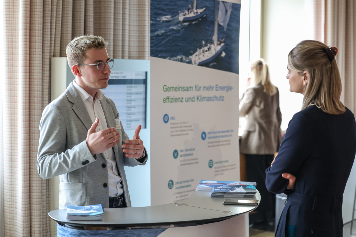 Gespräche am Stand der Initiative Energieeffizienz- und Klimaschutz-Netzwerke beim ZIA-Nachhaltigkeitskongress 2023 in Berlin. Foto: Vincent Grätsch