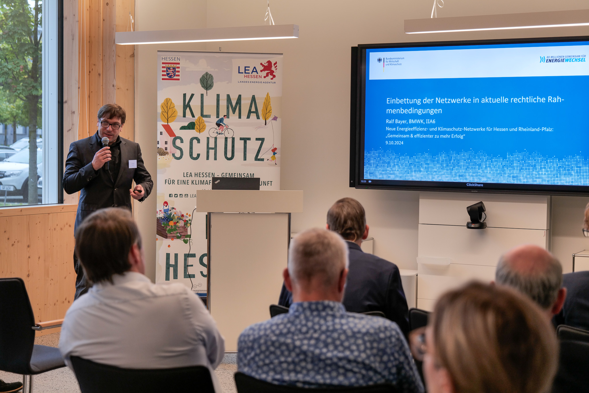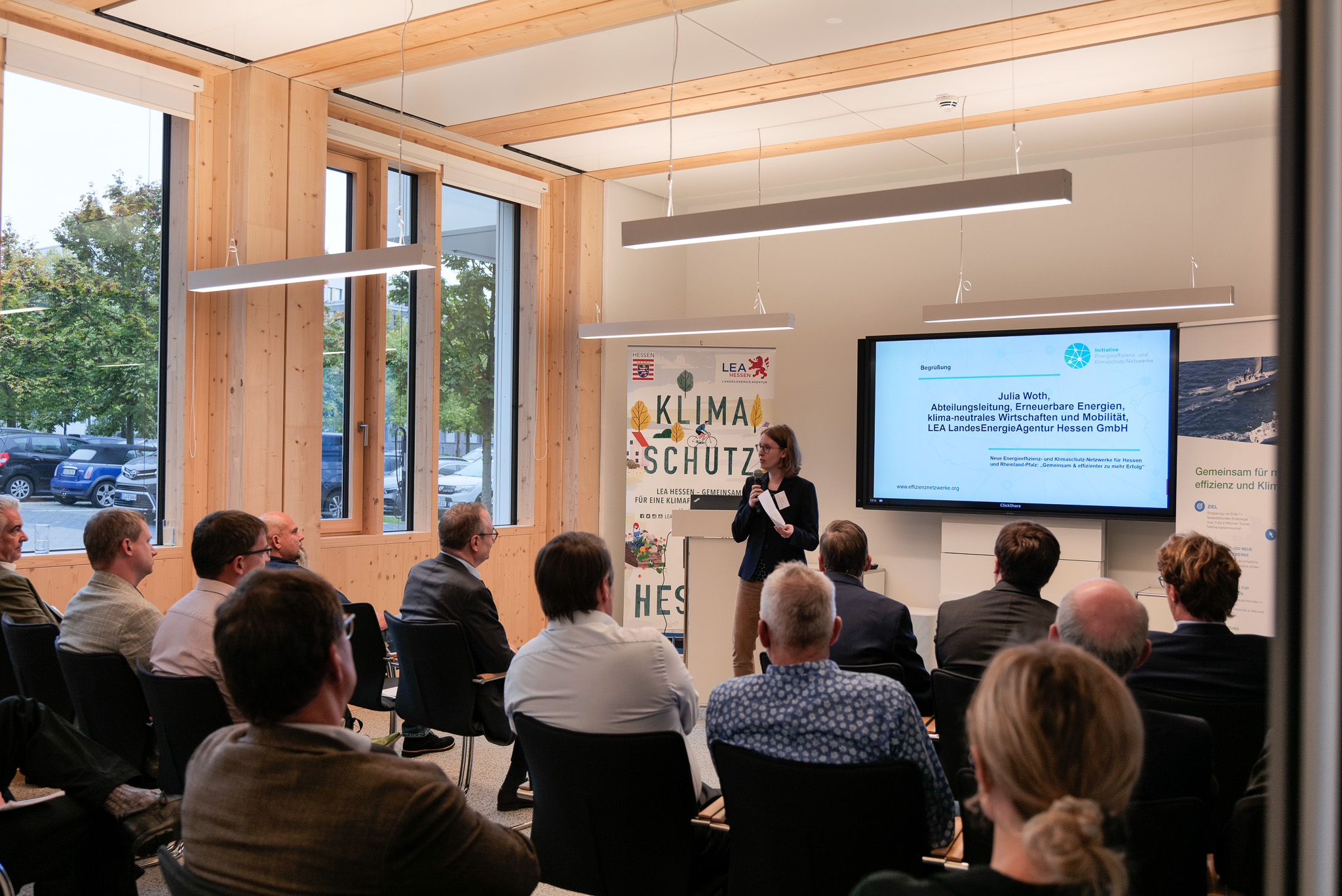 Am 09. Oktober fand in Wiesbaden die zweite regionale Roadshow-Veranstaltung der Initiative statt. Gastgeber war die LEA LandesEnergieAgentur Hessen. Diskutiert wurde unter anderem über gesetzliche Rahmenbedingungen, die als dynamisch wahrgenommen werden. Auch fachliche Themen wie der Smart Meter-Rollout kamen zum Tragen, sowie die Frage, wie solche Fachthemen von den Netzwerkmoderierenden in den Netzwerken besser platziert werden können. Einzelne Netzwerke aus der Region (u.a. Energieeffizienz- und Klimaschutz-Netzwerk ÖKOPROFIT-Klub Wiesbaden 2022/2023, ecoistics.EffNaNet.Ford, ecoistics.EffNaNet.pfm, ETA-Plus Südhessen und ETA-Metropol Rhein Main Neckar) und ihre Erfolgsrezepte wurden zudem in Pitches vorgestellt. Als gute Praxis wurde auch die unbürokratische und praxisnahe Ausgestaltung von Netzwerktreffen im Allgemeinen betont, die es allen Beteiligten ermöglicht, sich mit ihrer eigenen Expertise einzubringen. Den Ausklang der Veranstaltung bildete eine interaktive Netzwerkbörse: Hier konnten interessierte Unternehmen an bestehende Netzwerke vermittelt werden und die Gründung eines neuen Netzwerkes in Mittelhessen wurde angestoßen.
