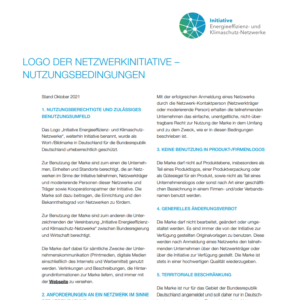 ![]() | Nutzungsbedingungen des Logos der Initiative Energieeffizienz- und Klimaschutz-Netzwerke | Stand 10/2021 | Download |
